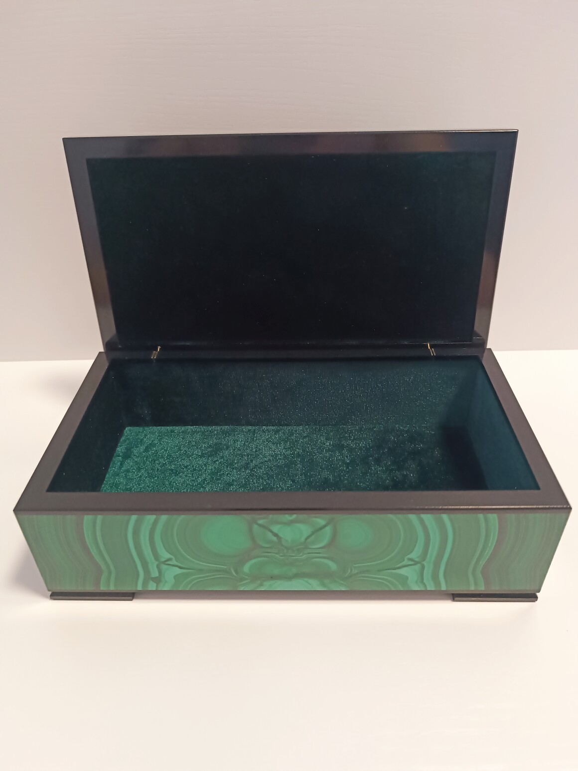 Шкатулка сделана Уральским Мастером из природного малахита . Шкатулка внутри обклеена зеленым бархатом. На ножках наклеена специальная ткань чтоб не царапать поверхность. Ножки рамки сделаны из долерита , шарниры из латуни (Ручная работа)
