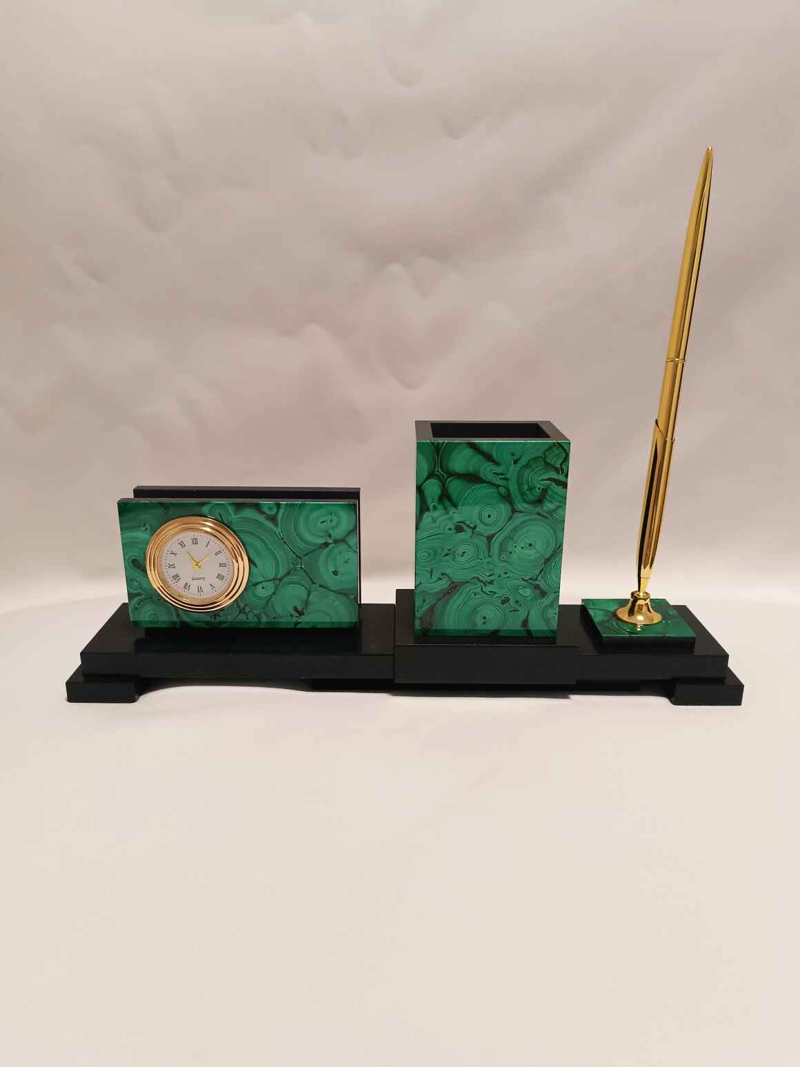 Изготовлен Уральски Мастером из природного малахита, долерита и латуни.Кварцевые часы.