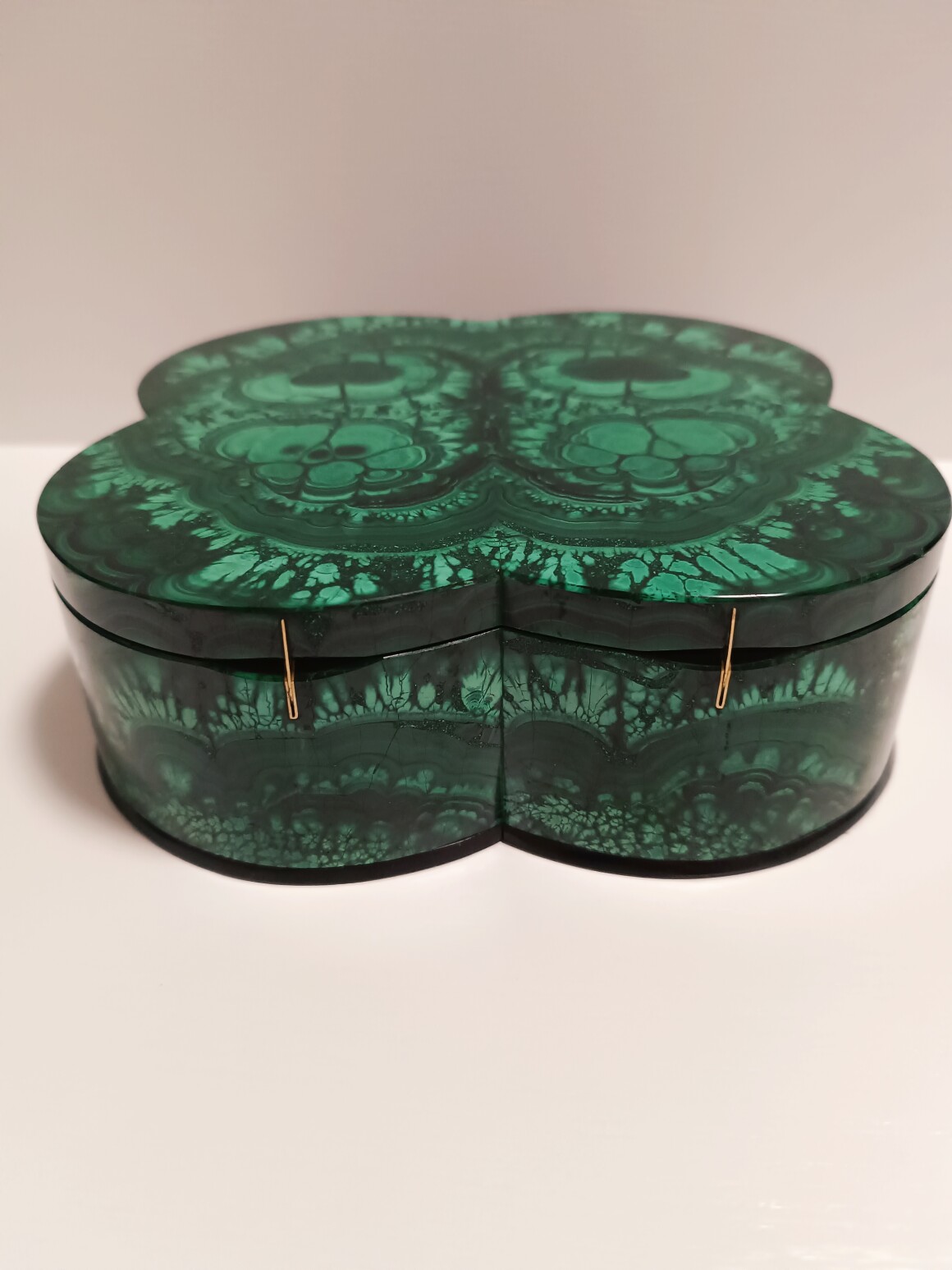 Шкатулка сделана Уральским Мастером из природного малахита . Шкатулка внутри обклеена зеленым бархатом. На дно наклеена специальная ткань чтоб не царапать поверхность. Дно и рамки сделаны из долерита , шарниры из латуни (Ручная работа)