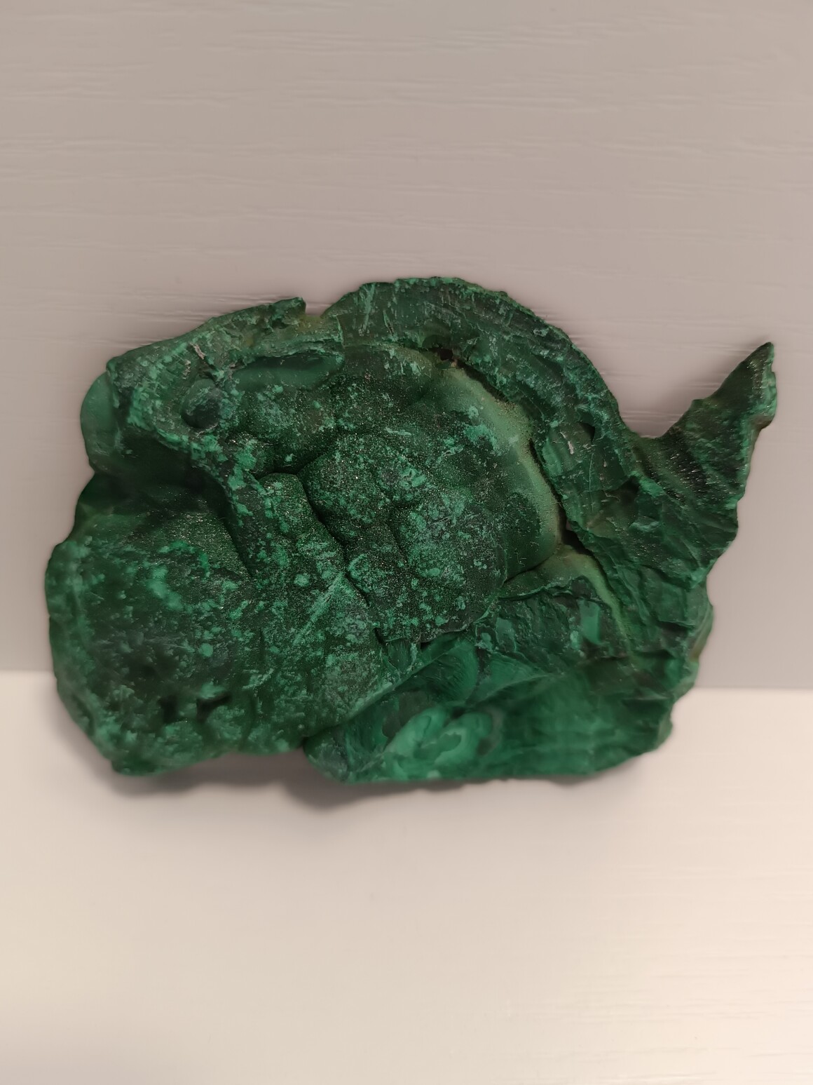 Малахитовый срез . Вес 110 гр размер по краям среза 90-70мм. 9-7 см
