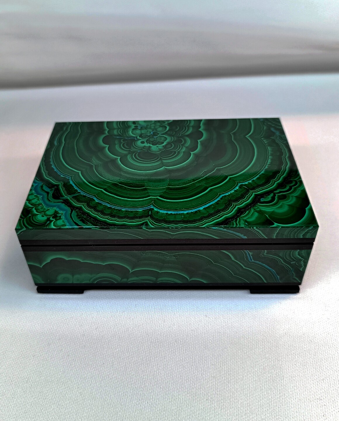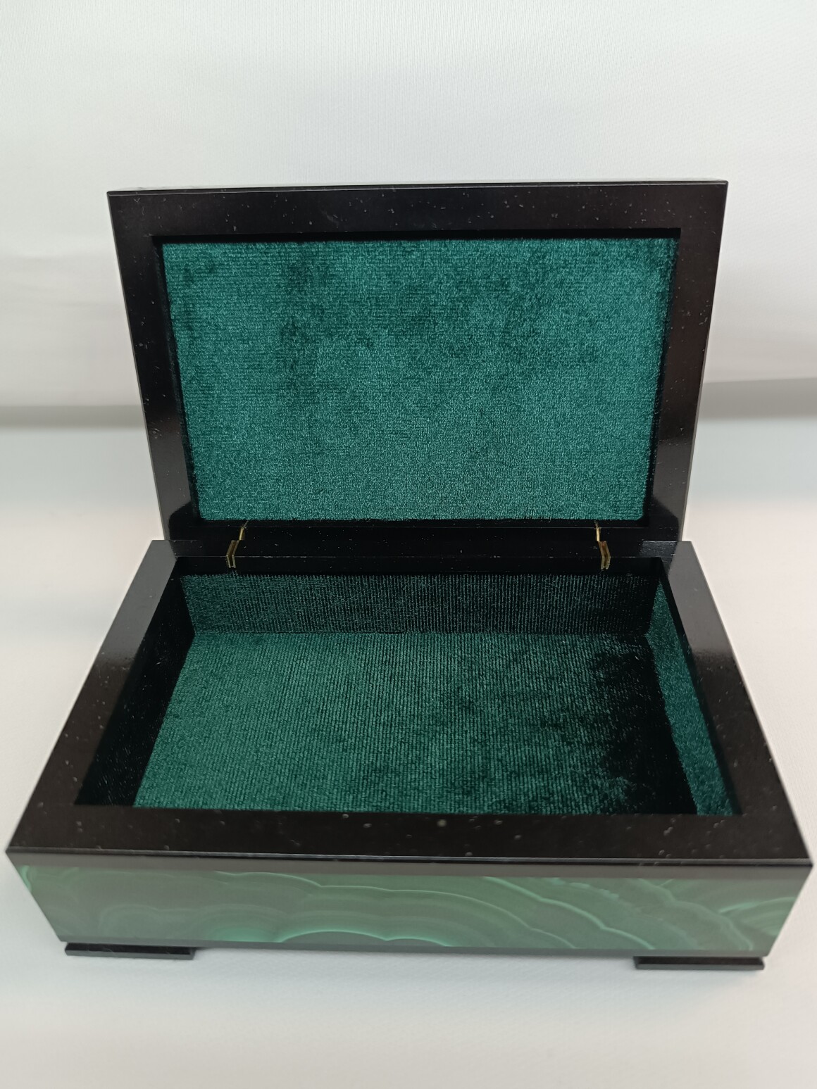 Шкатулка из натурального малахита ручной работы: фото, размеры и актуальные цены. Идеальный подарок и декор. Быстрая доставка по России, гарантия качества.Размер 120-80 мм
