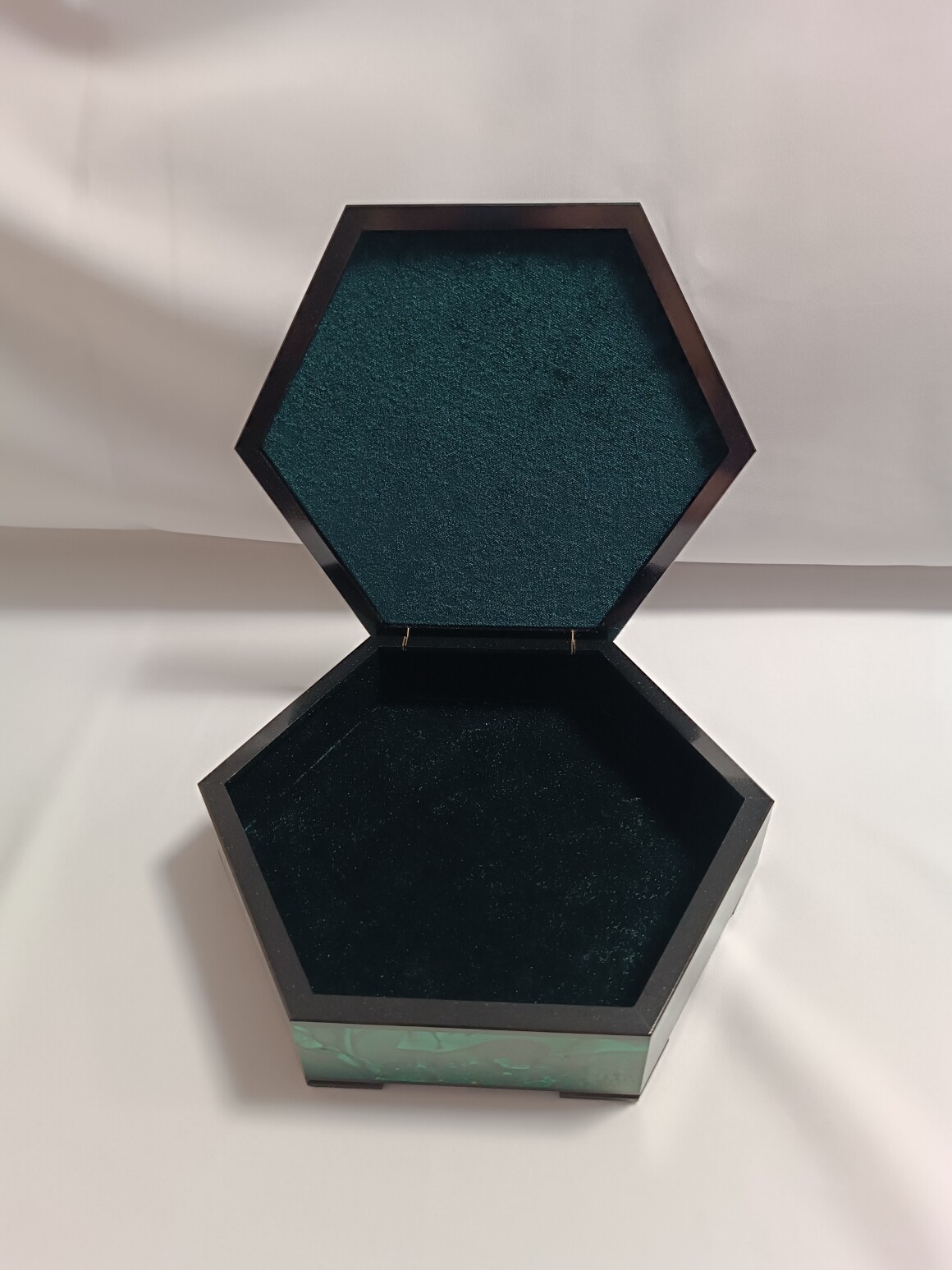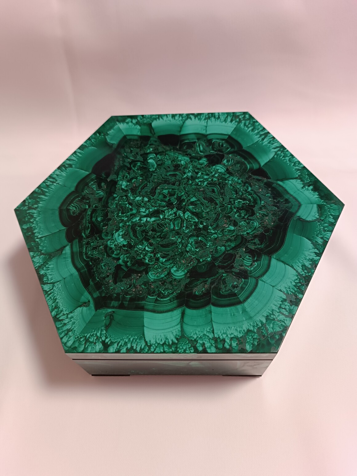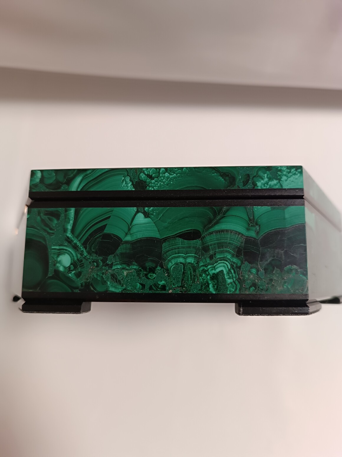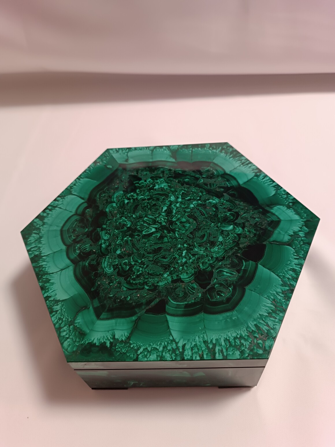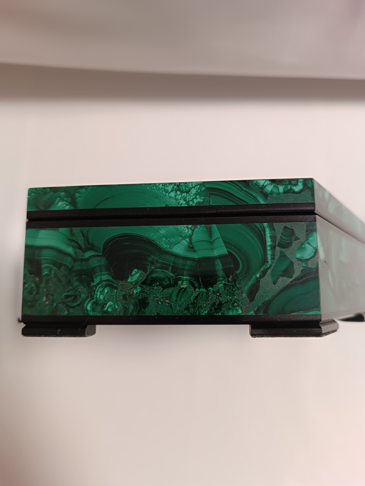 Шкатулка сделана Уральским Мастером из природного малахита.Размер шкатулки 180-180-55 мм . Шкатулка внутри обклеена зеленым бархатом. На ножках наклеена специальная ткань чтоб не царапать поверхность. Ножки рамки сделаны из долерита , шарниры из латуни (Ручная работа) Шкатулка вместительная , можно хранить не только ювелирные изделия.